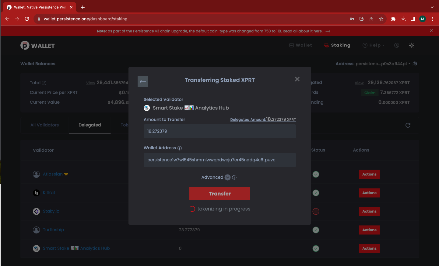 Eg: As I delegate ~23 XPRT to smart stake validator, i need to check if smart stake validator has enough capacity to help facilitate migrate for my tokens. As in my case the validator has the capacity, we can move forward with the migation process.